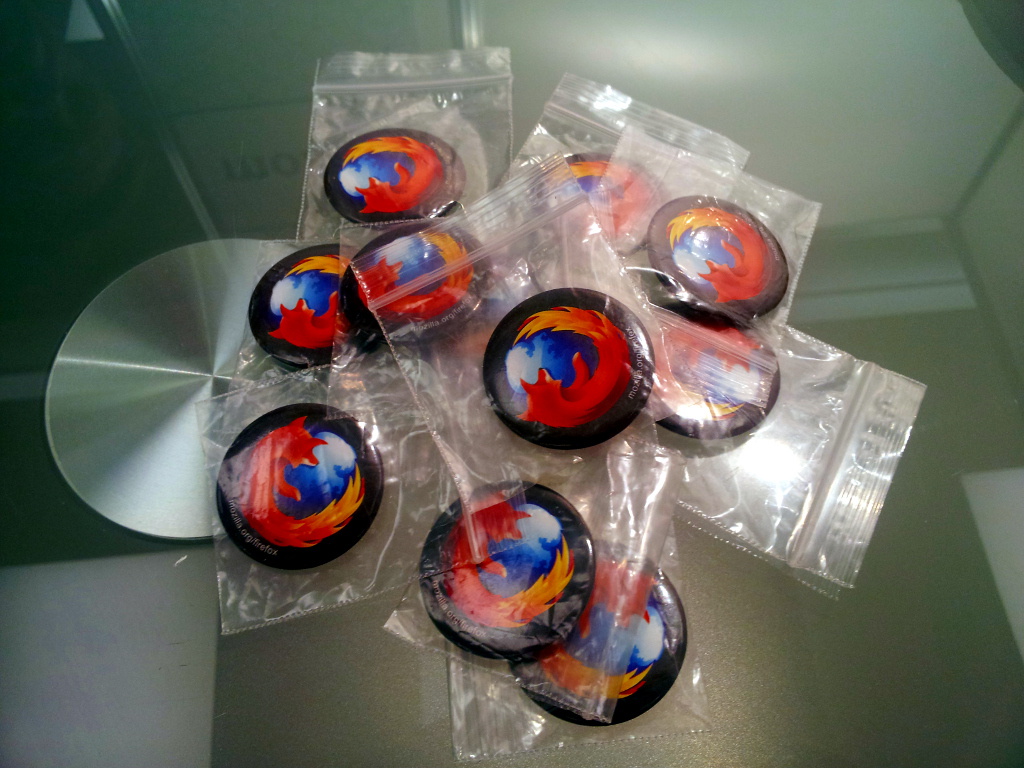 But wednesday arrived and the booth remained empty. So I contacted Michael, our rep of the swiss Mozilla community. After he asked me to get some swag from the local Mozilla office in Berlin, Marcel and I formed a plan.